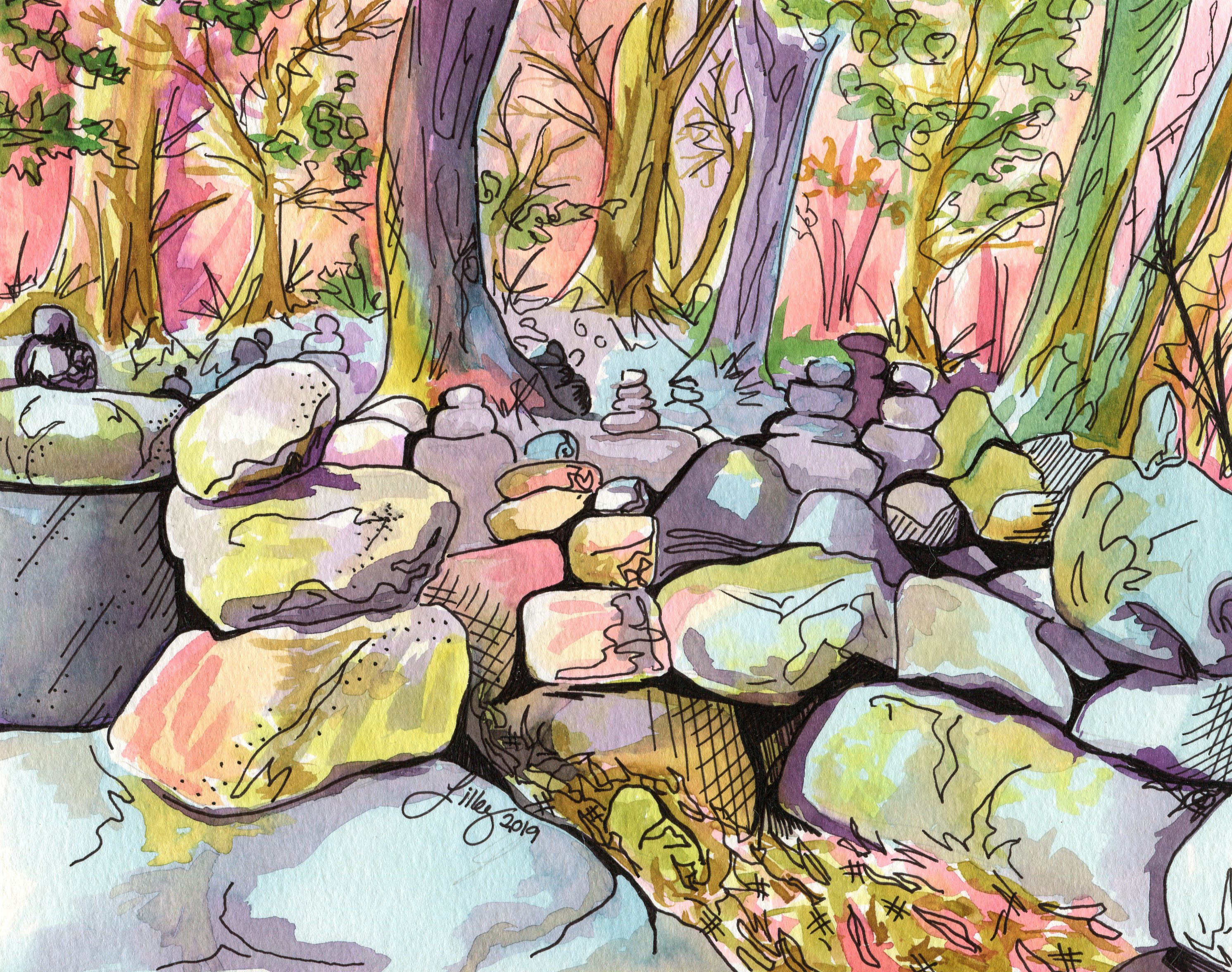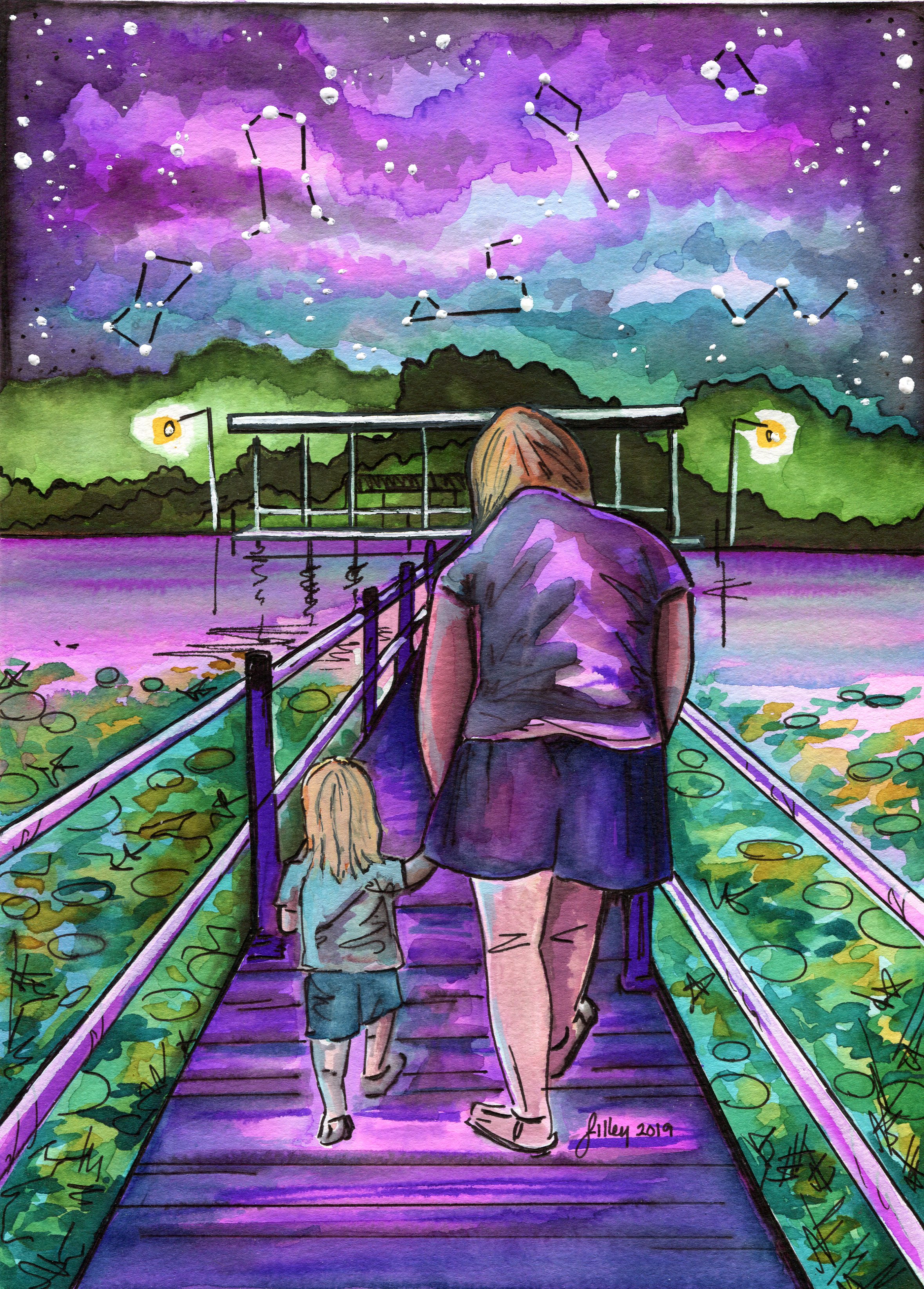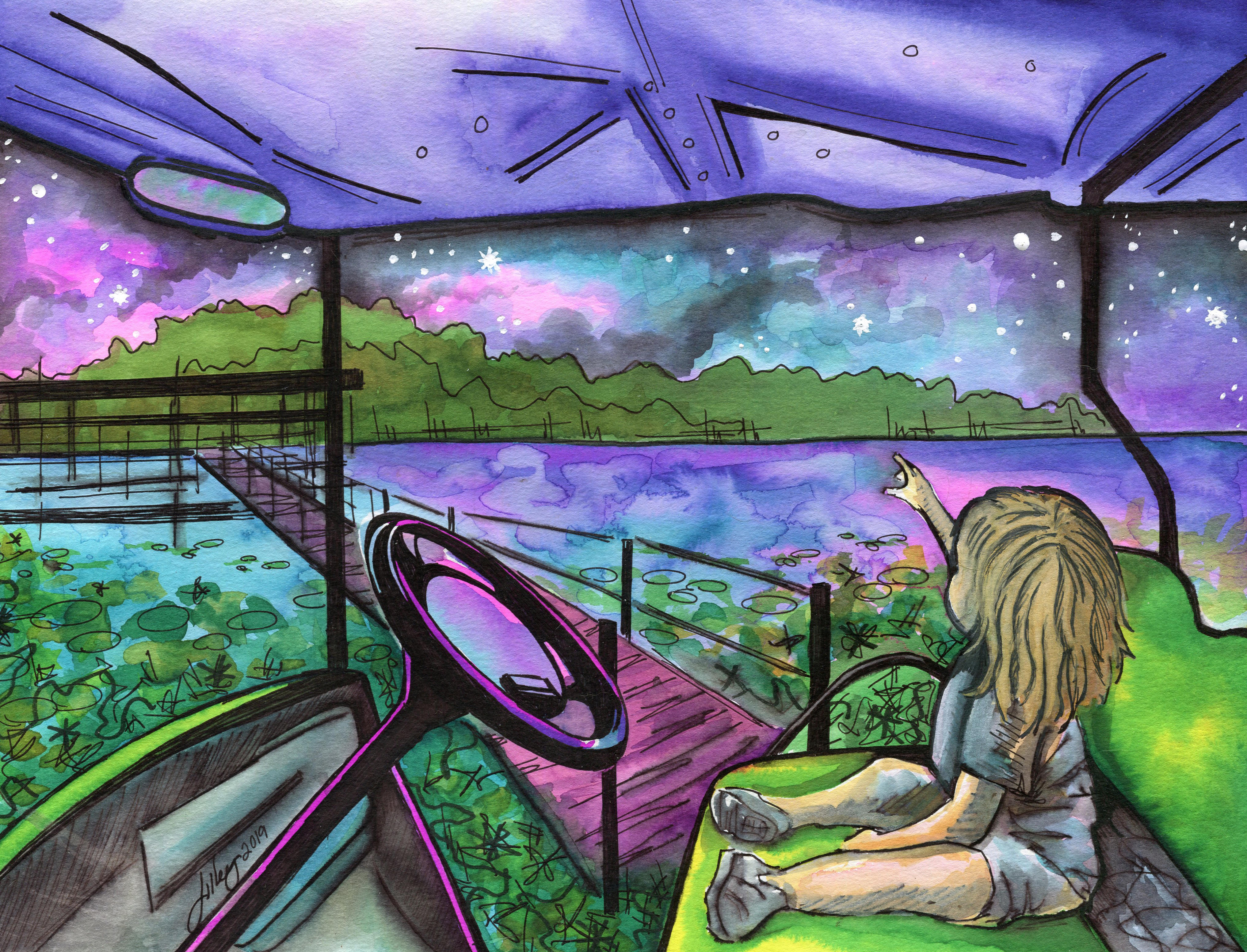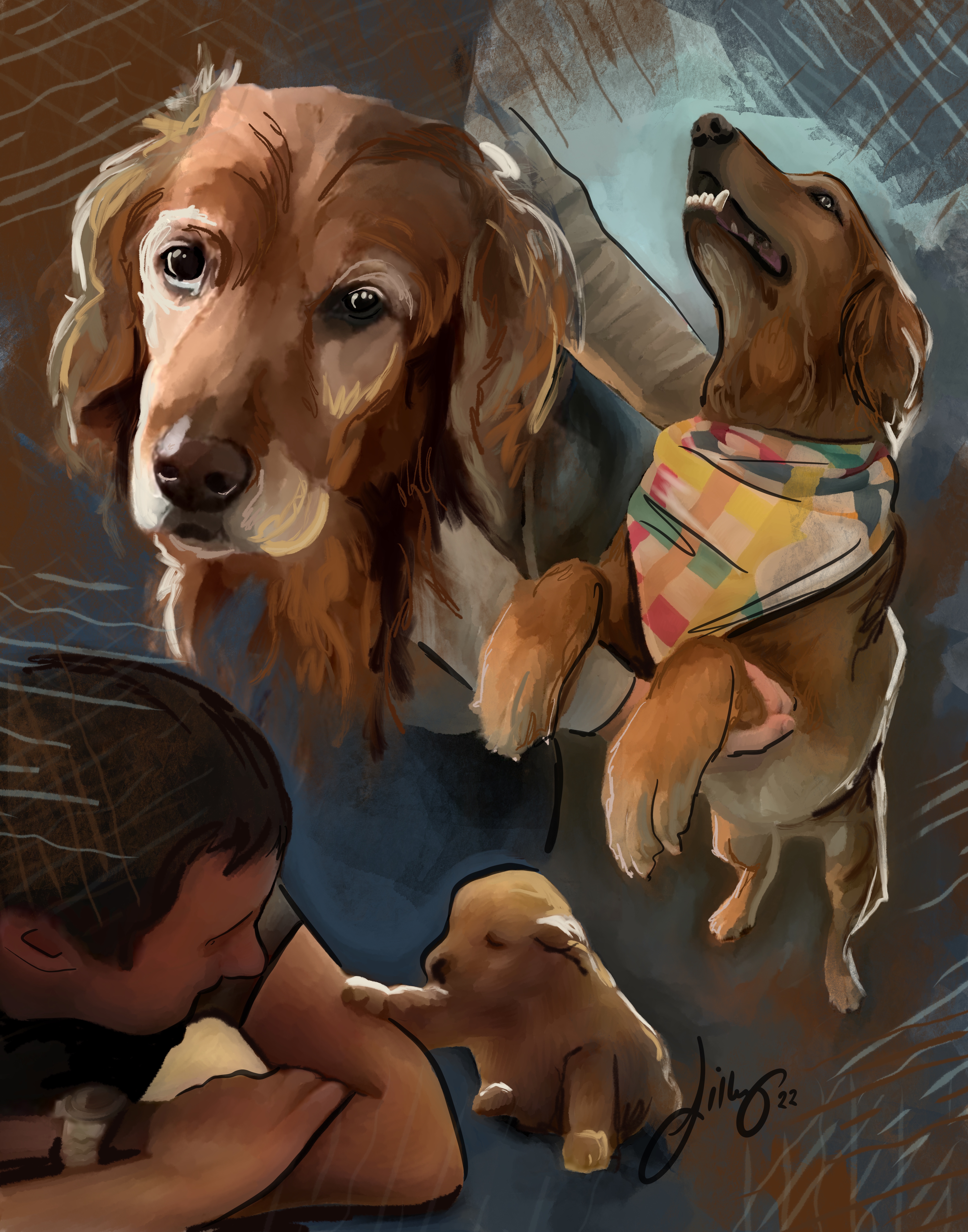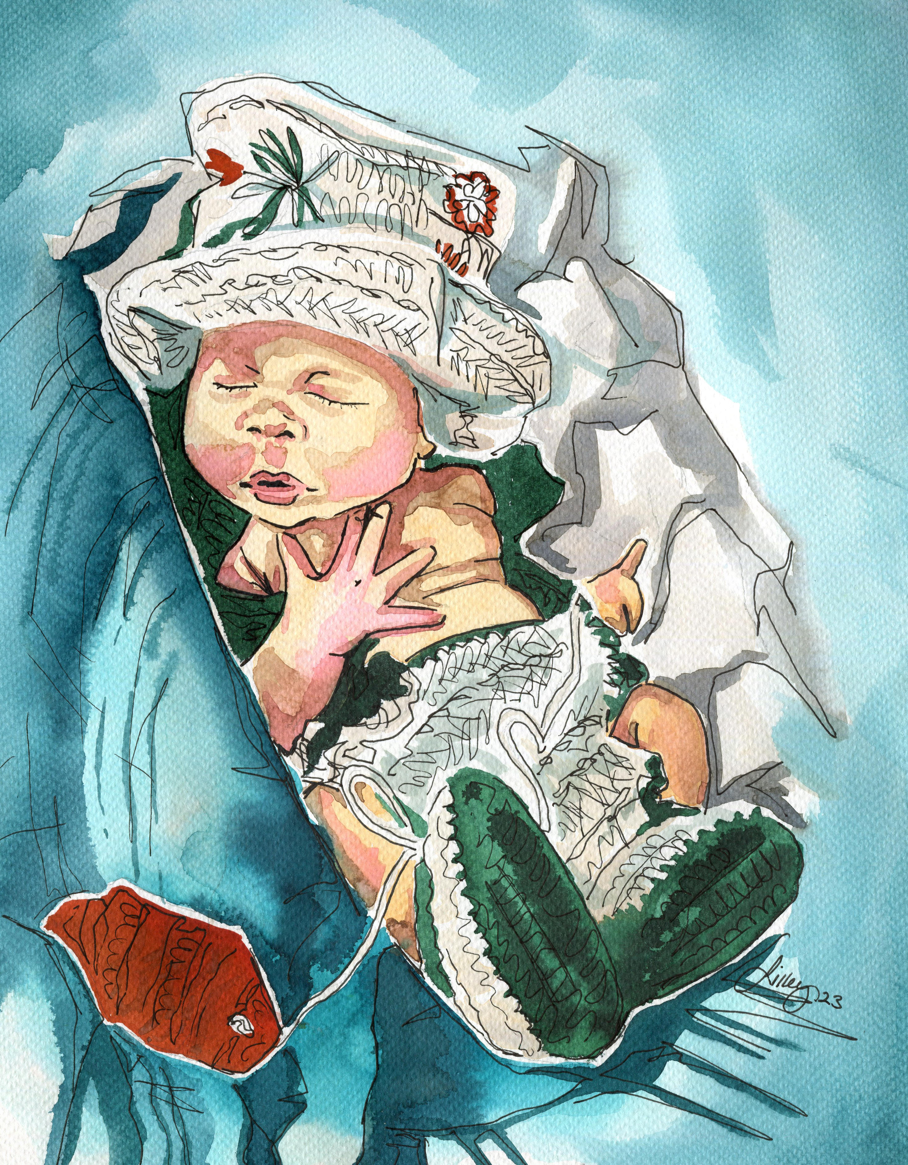 This collection is a tribute to the sweet memories of my niece’s early years, capturing the innocence and joy of her toddlerhood. Inspired by her favorite song, which she would hum with pure delight, the collection paints a vivid portrait of her world, centered around the familiar and comforting landscape of the family’s lake house. The paintings feature her favorite people, alongside beloved pets captured in moments of laughter, play, and quiet reflection, creating a sense of warmth and security. The surrounding nature, from the calm waters to the towering trees, embraces the spirit of family and the deep connection to the place where these precious moments took root.
