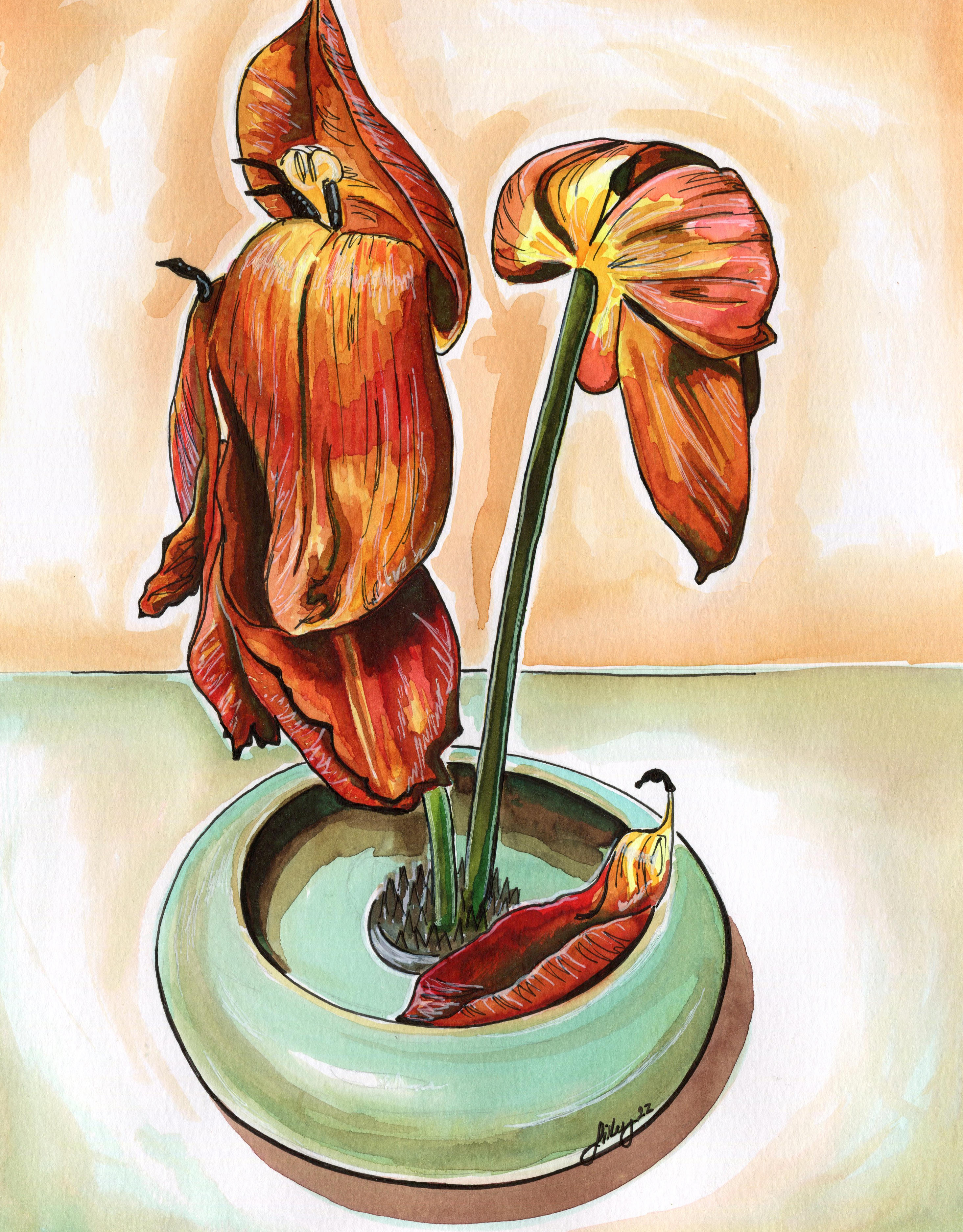 This collection captures the delicate beauty of flowers through soft, flowing brushstrokes and vibrant, translucent hues. Each piece showcases blooms in various stages of growth, highlighting the fragility and impermanence of nature and inviting a deep appreciation for its fleeting moments.